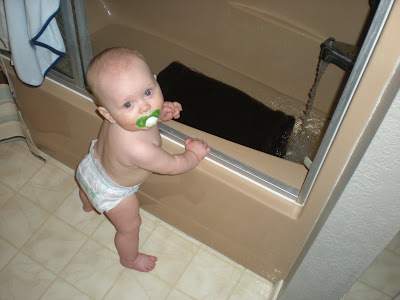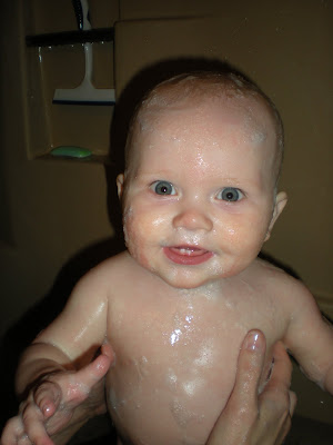Jonah LOVES his baths! He likes to splash a lot and get Mommy soaking wet. He also likes to stand up and crawl around in the tub which as you can imagine gets very…slippery.