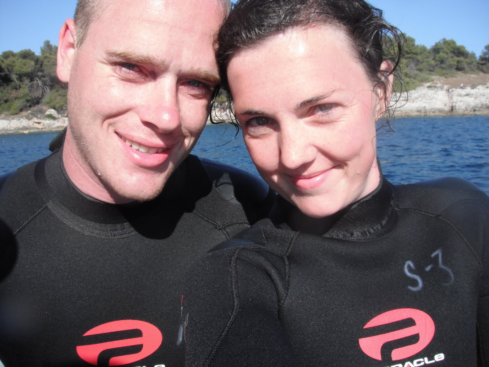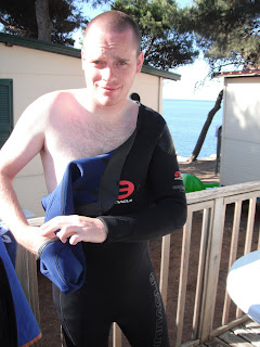 Our accommodations at the Stoja campground were great. Little mobile homes by the beach, complete with a fridge and stove and even a/c. The only pic I got of the mobile homes is this one of Nick doing the wetsuit dance, man I hated getting into those things. Actually, I have to admit, all of the equipment for scuba is a major pain to haul around and get set up.