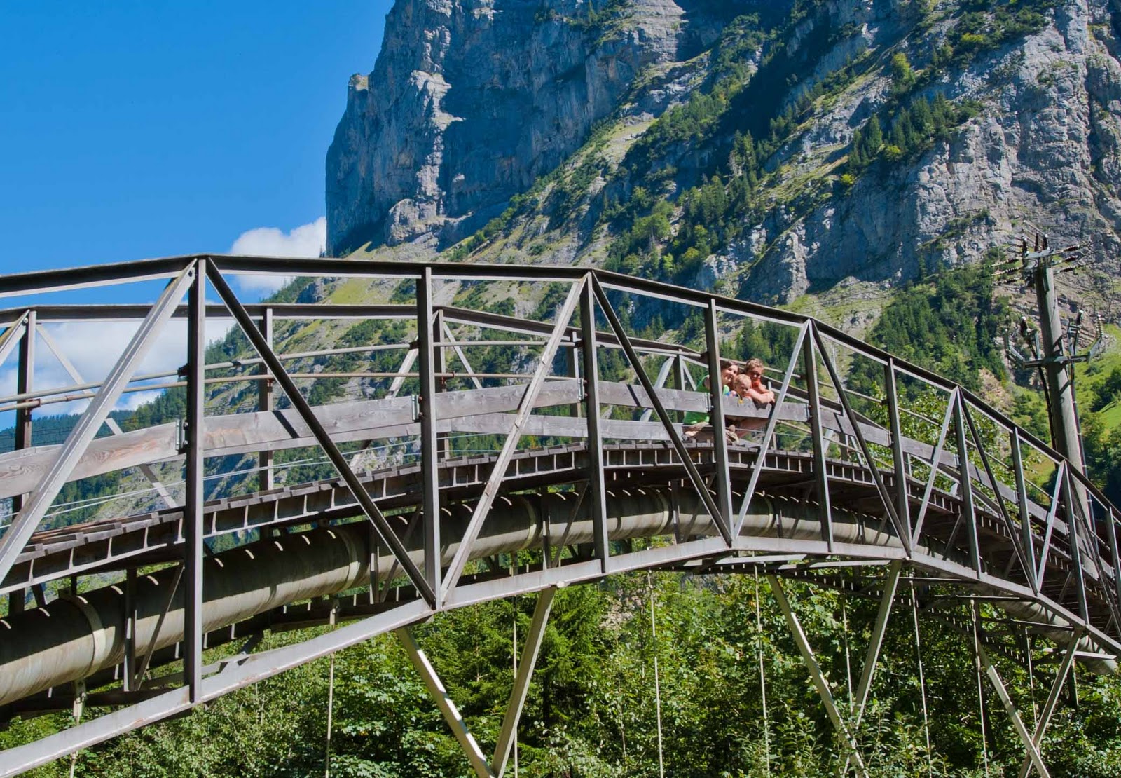 Interlaken is on a river that runs between two lakes. It is the capital of extreme sports. There are companies that will take you rafting, bungee jumping, sky diving, paragliding, canyoning…you name it, they do it. There are also lot’s of mountains to hike, and of course very expensive gondolas to help you see the view without having to hike. The first evening there we found a little mountain to hike, Heimwehfluh, just a short 20 minute hike up and it had an awesome view and a fun park on top.